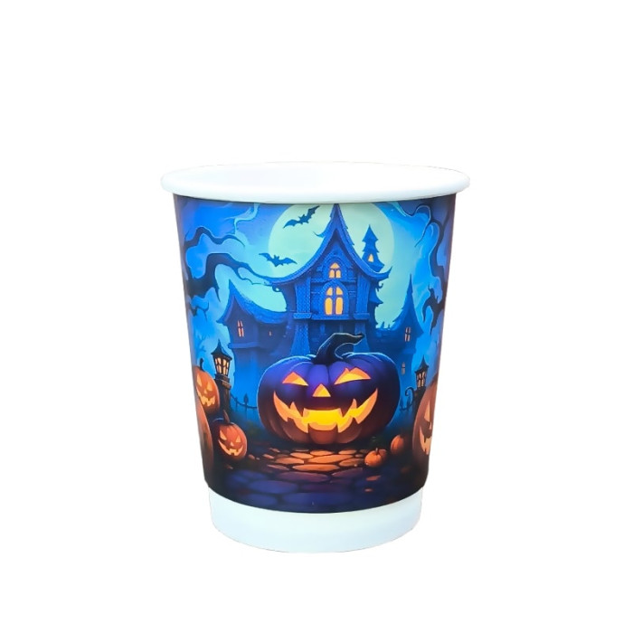 Двухслойные бумажные стаканы Halloween – это яркий выбор для тех, кто хочет добавить атмосферу праздника Хэллоуин в каждую деталь празднования!