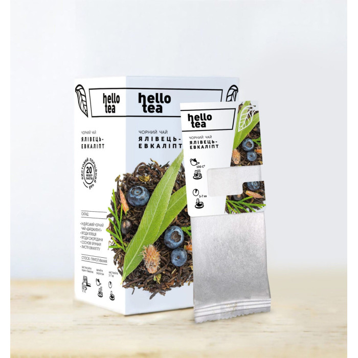 Чёрный чай пакетированный Hello Tea "Можжевельник – Эвкалипт", 20 пакетиков